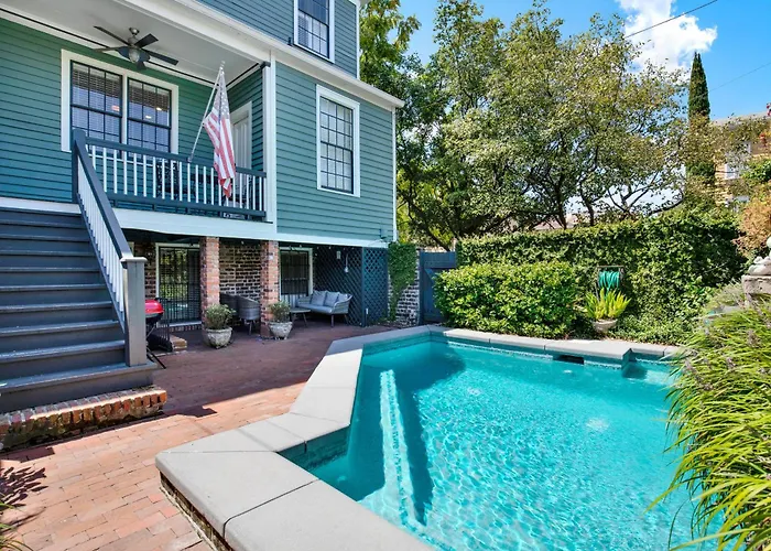Mint Julep Estate Villa, located about a 5-minute drive from SCAD Beach, welcomes guests with a swimming pool to refresh in. The 4-bedroom villa features opportunities for water sports activities and horse riding in the area, not very far from Lafayette Square.
